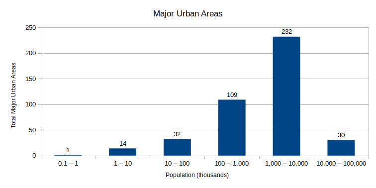 It's now possible to generate charts for the World Factbook, such as this histogram for the population of Major Urban Areas.
